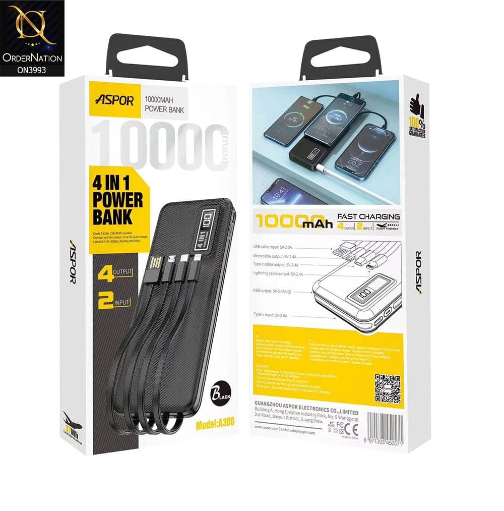 ASPOR A300 10000Mah Li-Polymer Battery 4 In1 Power Bank