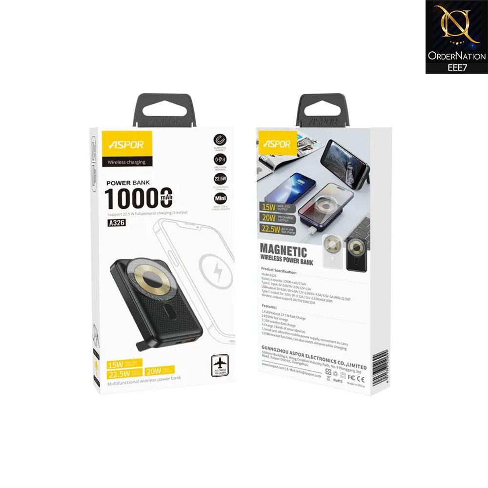 Aspor A326 New Product Digital Display Magnetic Wireless Power Bank With Foldable Holder Stand Fast Charging 10000mah - Black