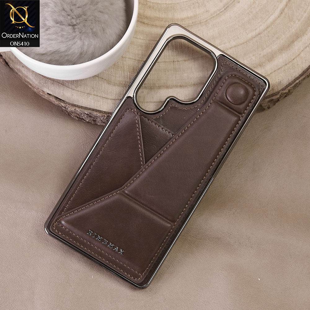 Samsung Galaxy S25 Ultra Cover - Dark Brown - Rimbmax Premium Leather Case With Card Holder And Kickstand Holder